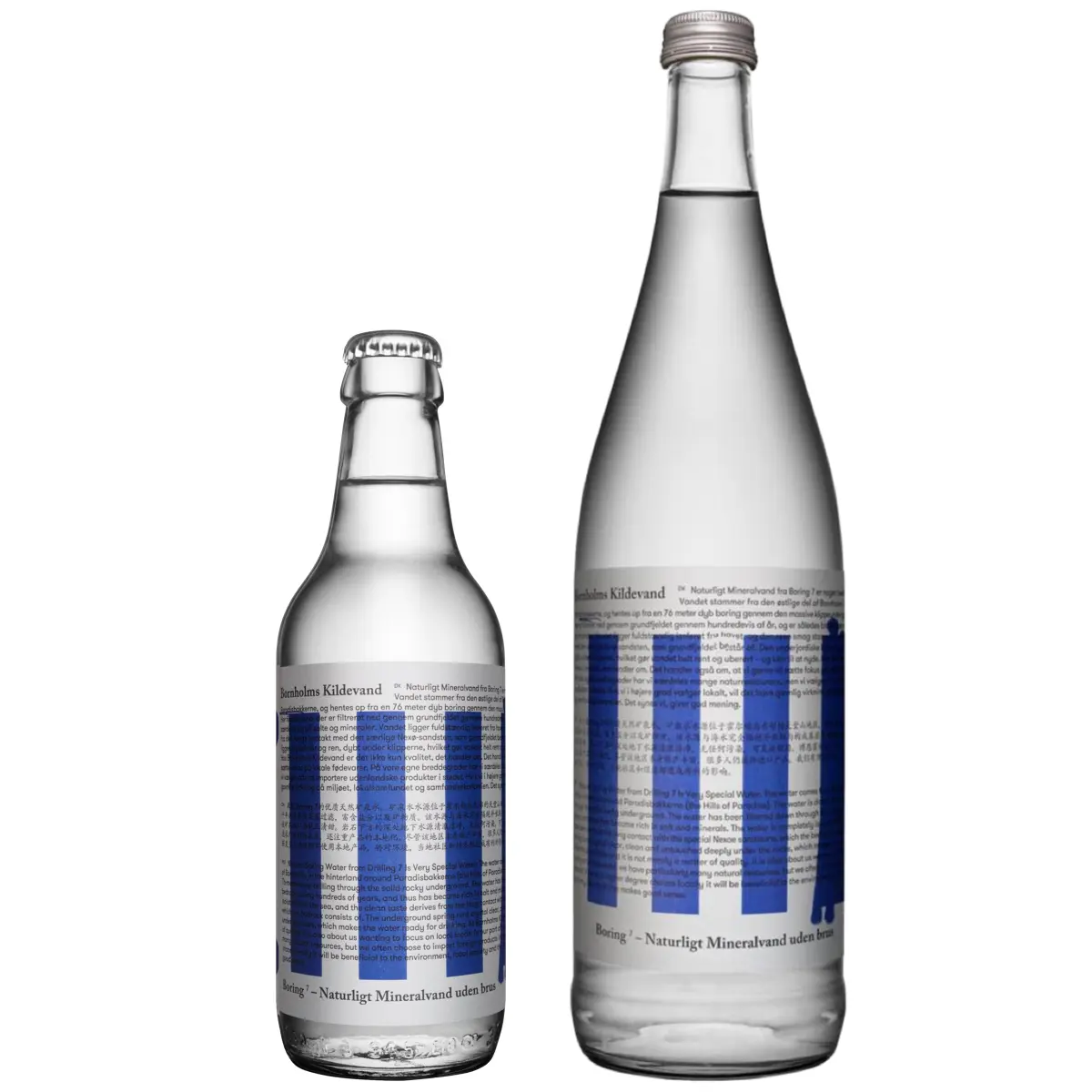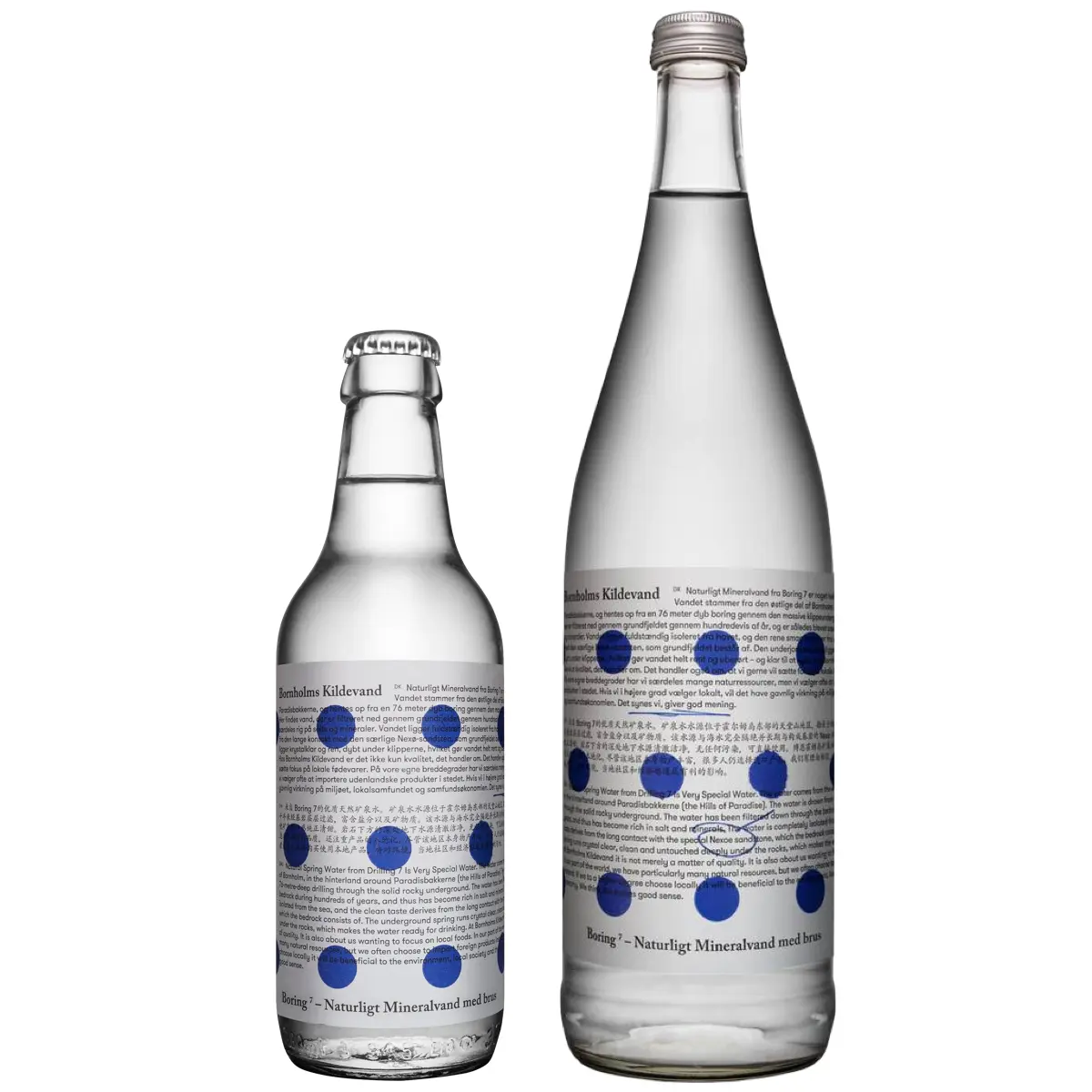 Vi har valgt at servere Bornholms Kildevand. Vi synes, det er Danmarks bedste, og det er vi heldigvis ikke ene om. Vandet fra Boring 7 ved Paradisbakkerne på klippeøen i Østersøen er fyldt med gode salte og mineraler fra den bornholmske undergrund, og det er med til at gøre slurken både frisk og smagfuld, samtidig med at det forstærker smagsnuancerne i maden, den serveres til.
