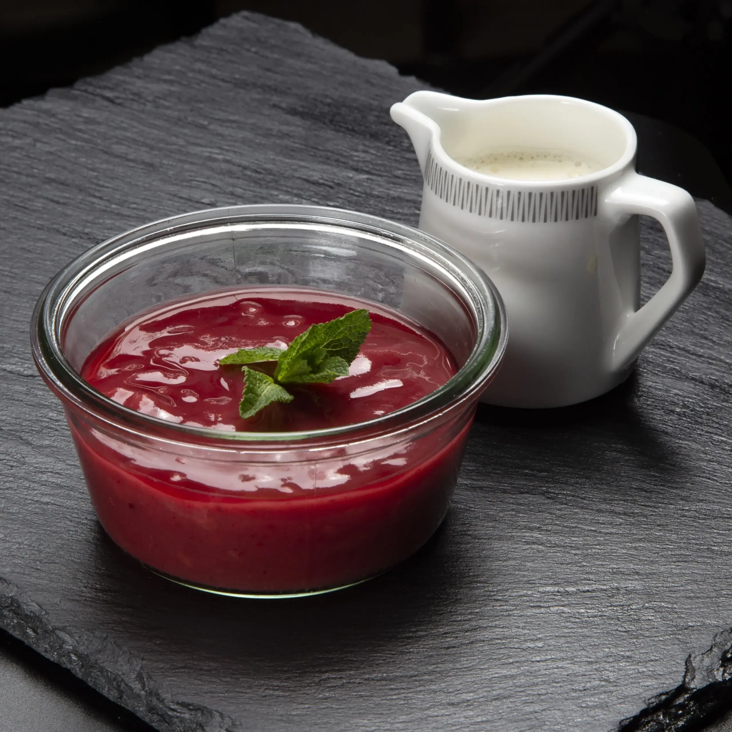 Den mest klassiske danske dessert. Umulig at udtale for vores udenlandske gæster – men nem at elske! Puré af røde danske bær med økologisk piskefløde, hjemmelavet af Iben efter restaurantens traditionelle familieopskrift.